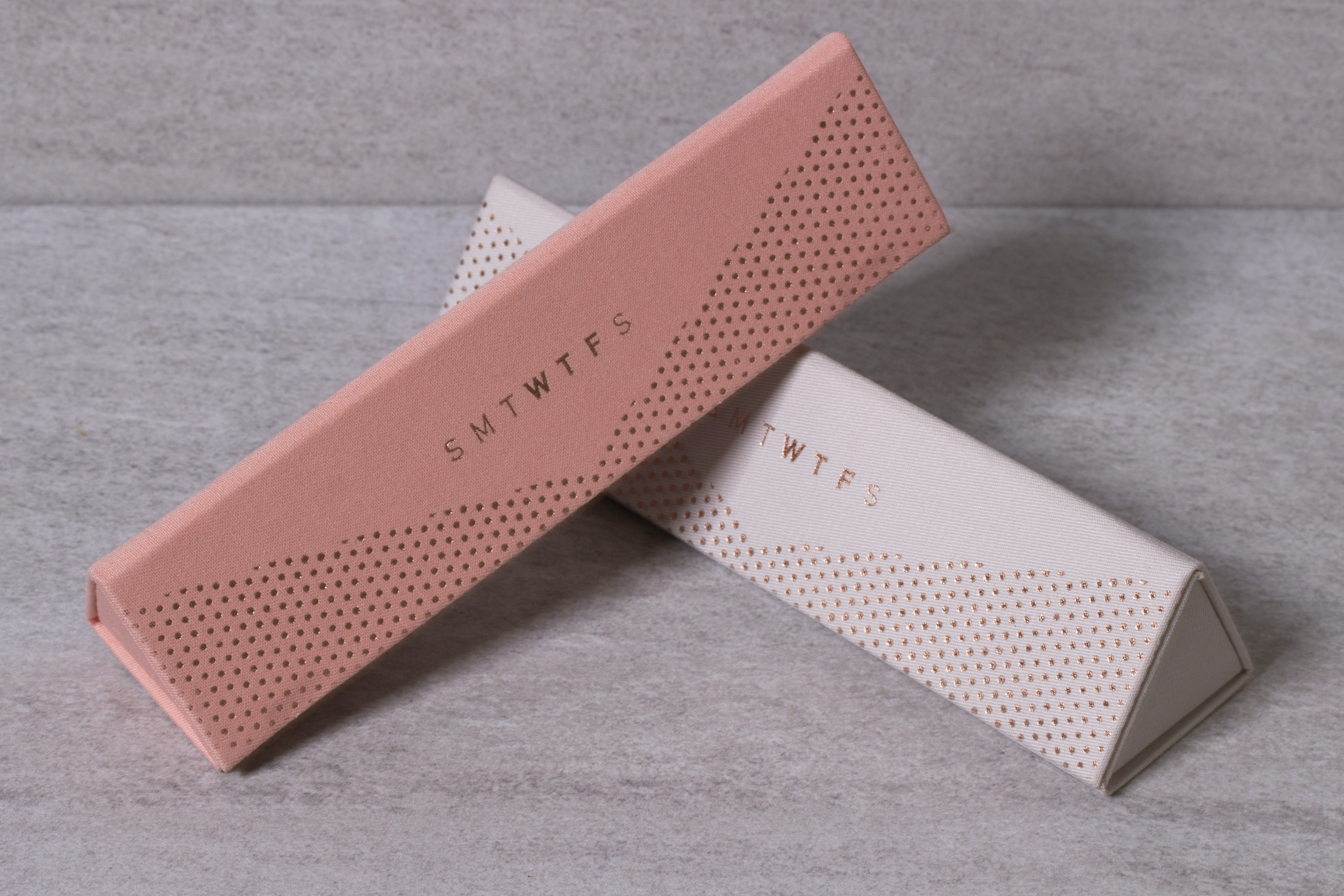 High-quality fabric is being used on the cover for this creative packaging. Gold foil is being utilized on the fabric to bring out the unique aesthetic appearance. Unlike the ordinary pen box structure, this pen box is built with a triangular shape. Insert is carefully designed to make sure the pen won't fall out during transportation.