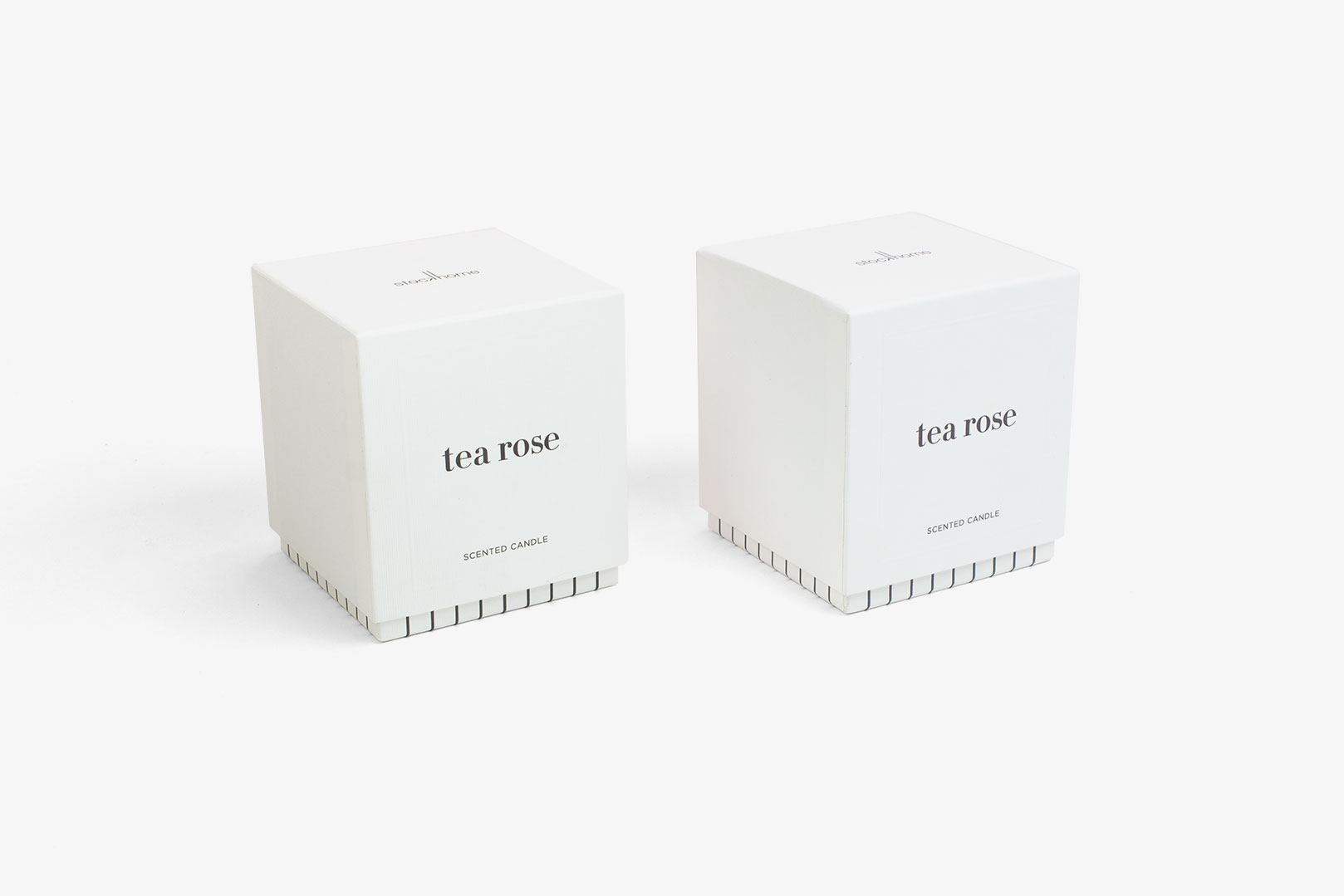 This elegant candle box is wrapped with high quality linen paper. The special texture paper upgrades the brand identity for this company. The logo and word descriptions are being foil stamped with black metallic paper. The straight edges give the clean look for the box layout. Each fragrance is embossed with square border.